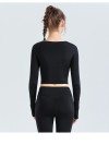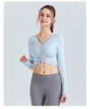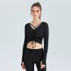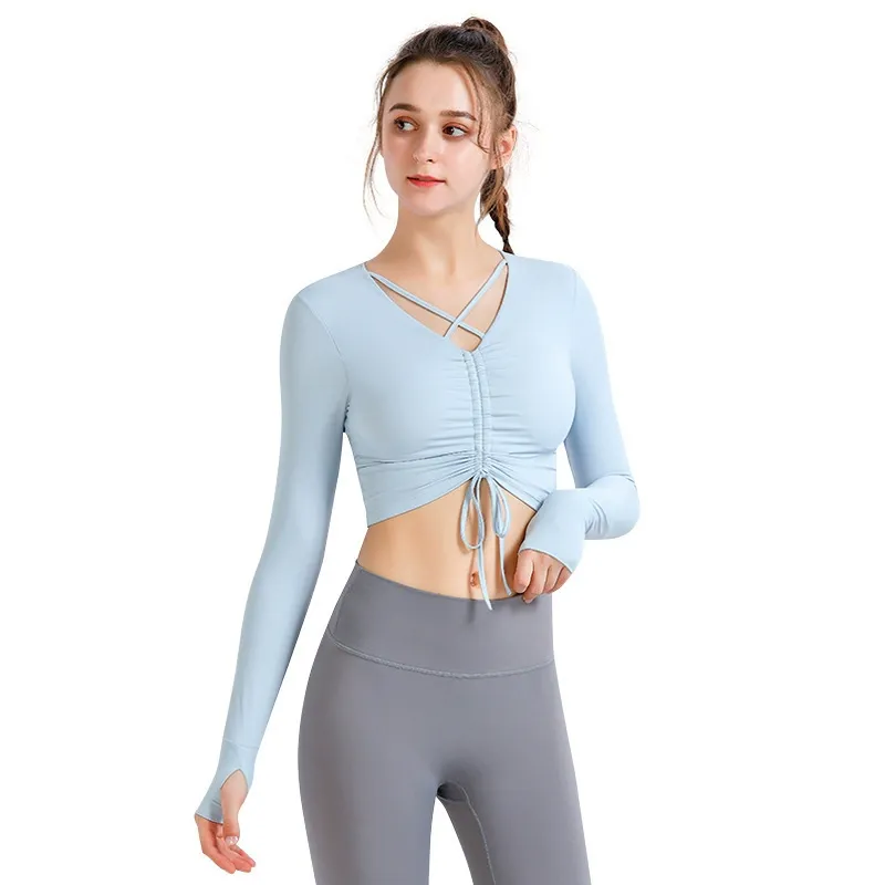 t-shirt with exposed navel sports long sleeved shirt with straps high stretch running and fitness clothes yoga clothes women tight fitting