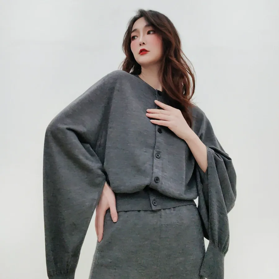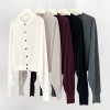 spring lantern sleeve knitted cardigan women simple split sleeve spun wool single breasted thin top