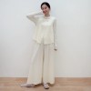 16 stitches knitted wool wide leg pants for women four flat stitches elastic waist casual pants