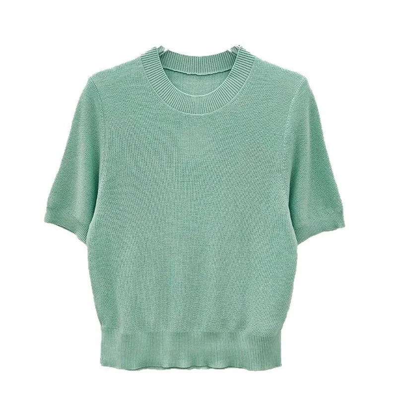 summer new mulberry silk wool round neck short sleeve knitted hoodie women heart machine small sexy backless t-shirt