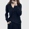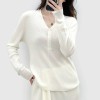 16 stitches fine spun mulberry silk wool simple v-neck half placket knitted sweater for women minimalist slimming thin sweater top