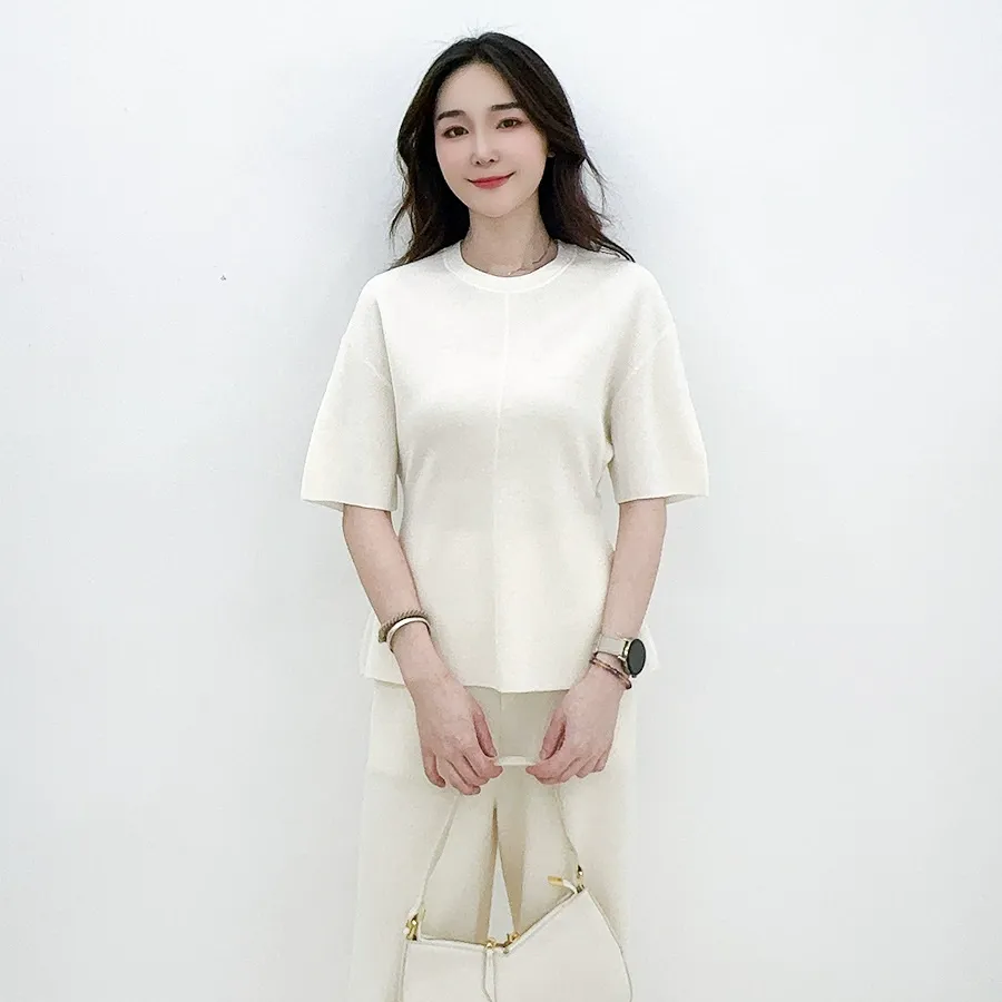 new 16 stitches fine spun mulberry silk wool knitted short sleeved machine design texture round neck top instantly becomes smaller and waist less