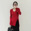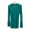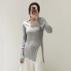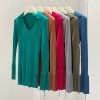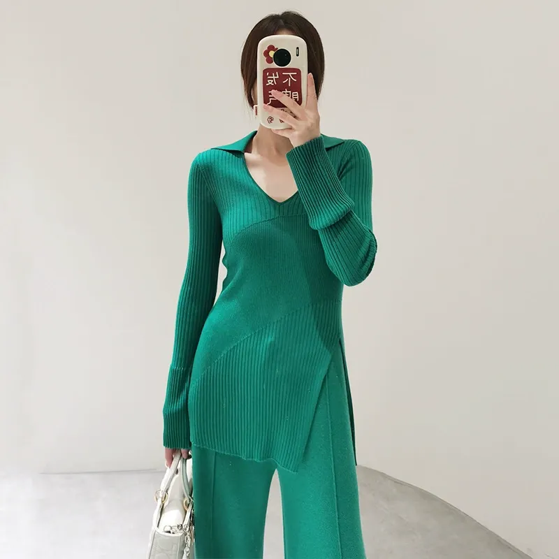 polo collar slit slimming pure wool fine needle pit stripe knitted sweater for women long sleeved slim fit base top
