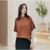 spring and summer temperament wide sleeved round neck knitted sweater for women solid color mulberry silk wool pullover sweater half length sleeved t-shirt
