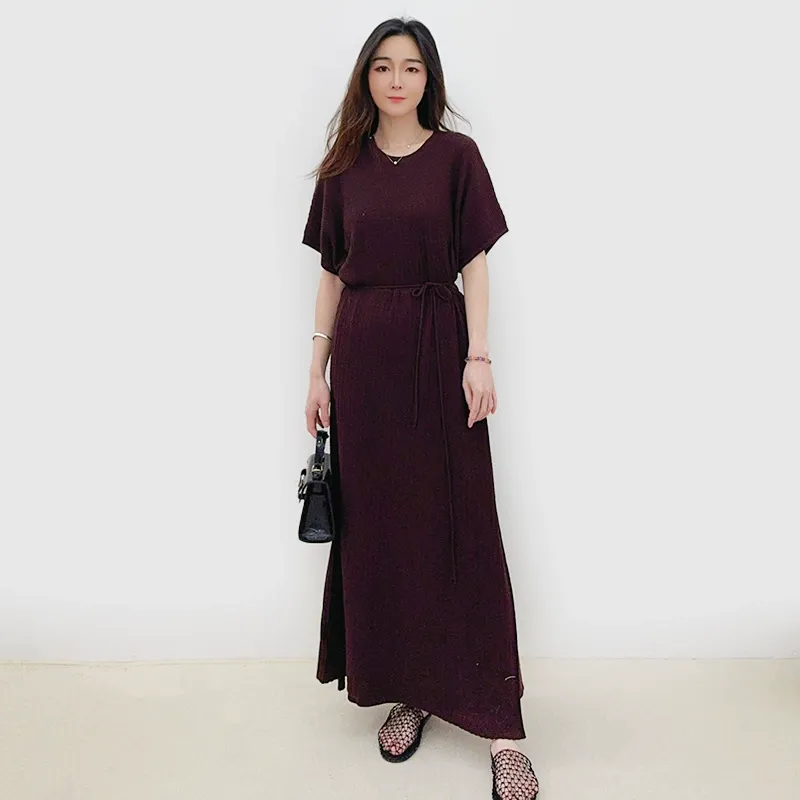 stereoscopic knot design niche side slit dress women spring and summer new style lace up loose hollow knitted long skirt