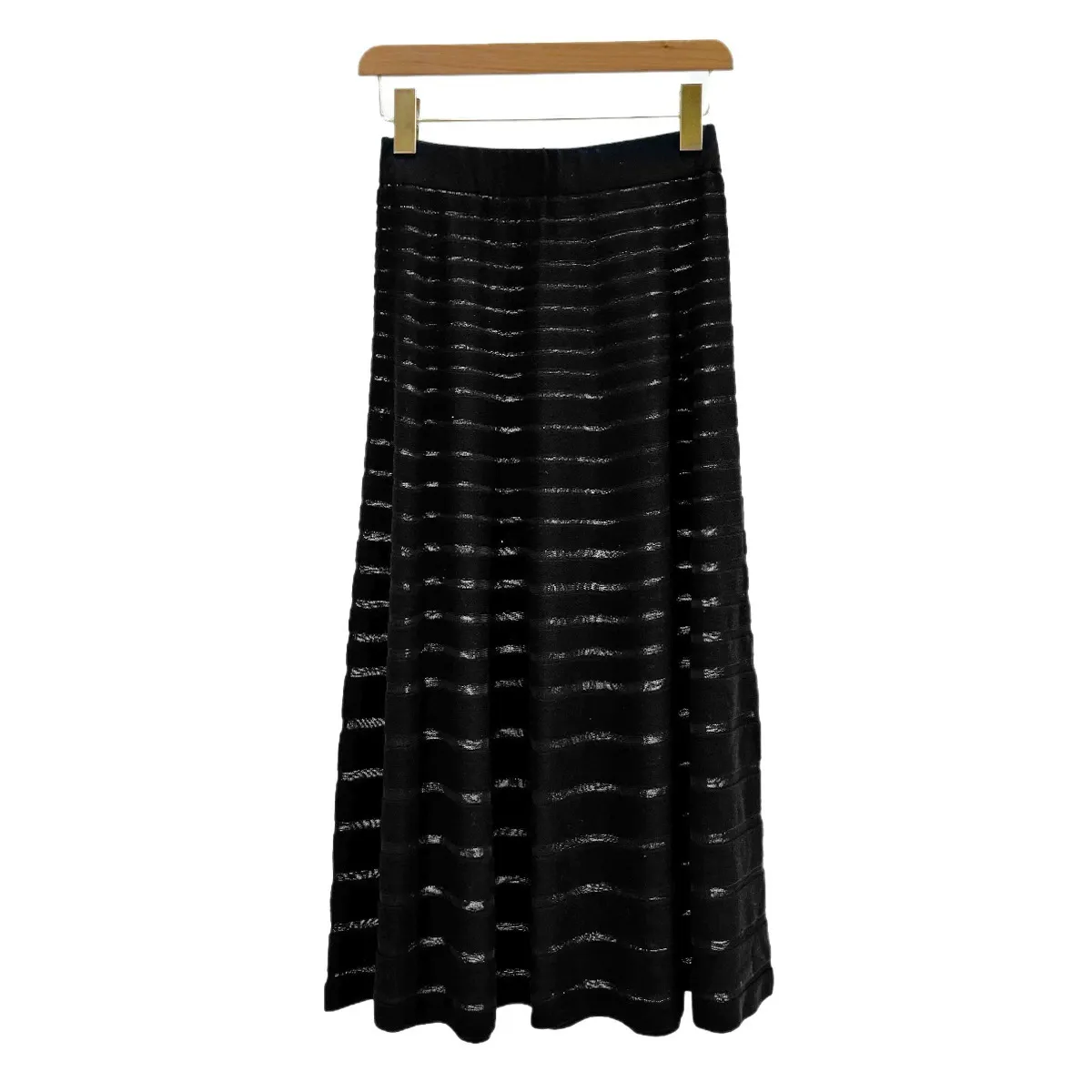16 stitches fine spun mulberry silk wool knitted half skirt for women spliced organza hollow stripes for slimming effect mid length skirt